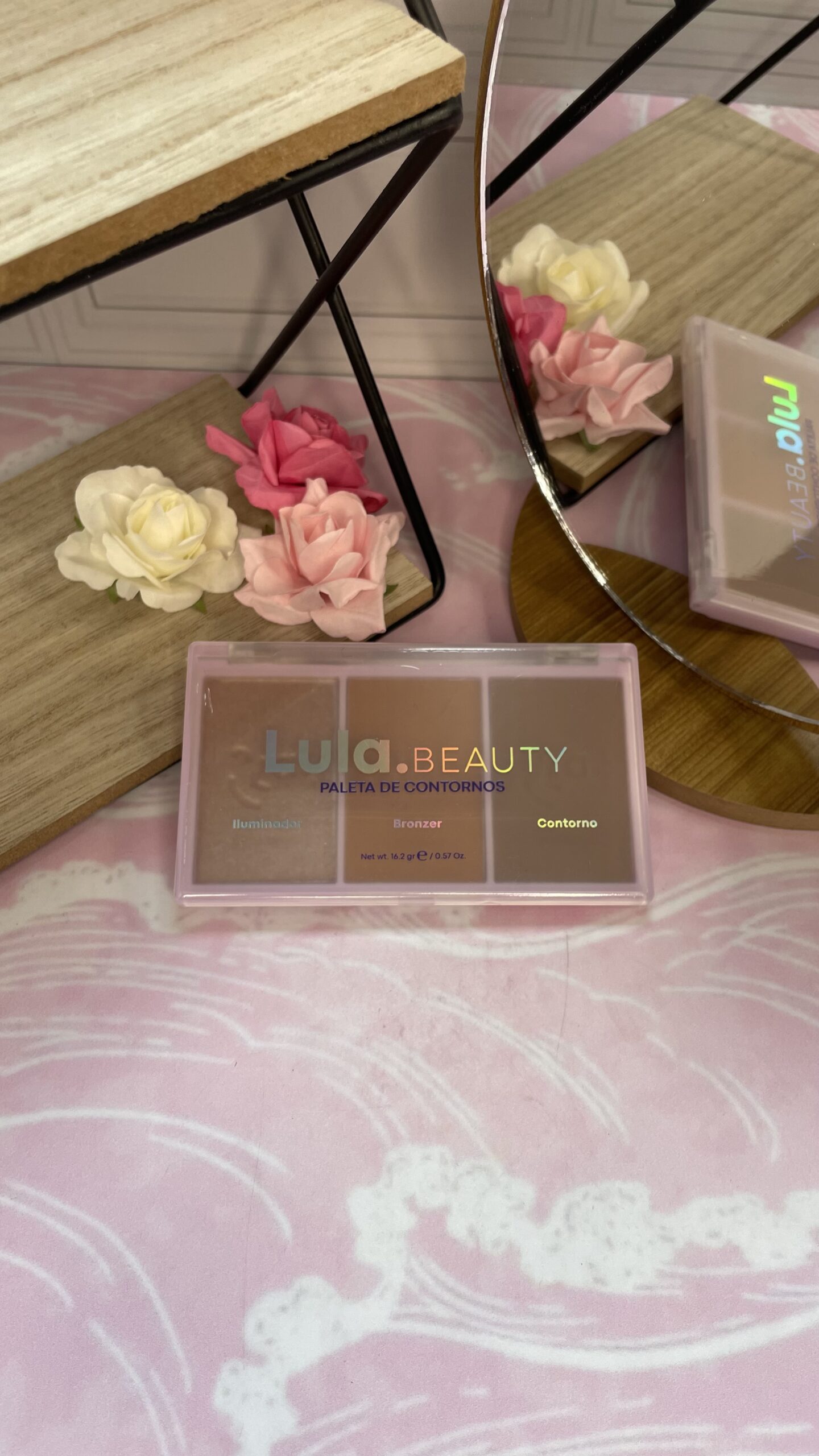Contiene Bronzer, contorno e iluminador en una sola paleta.